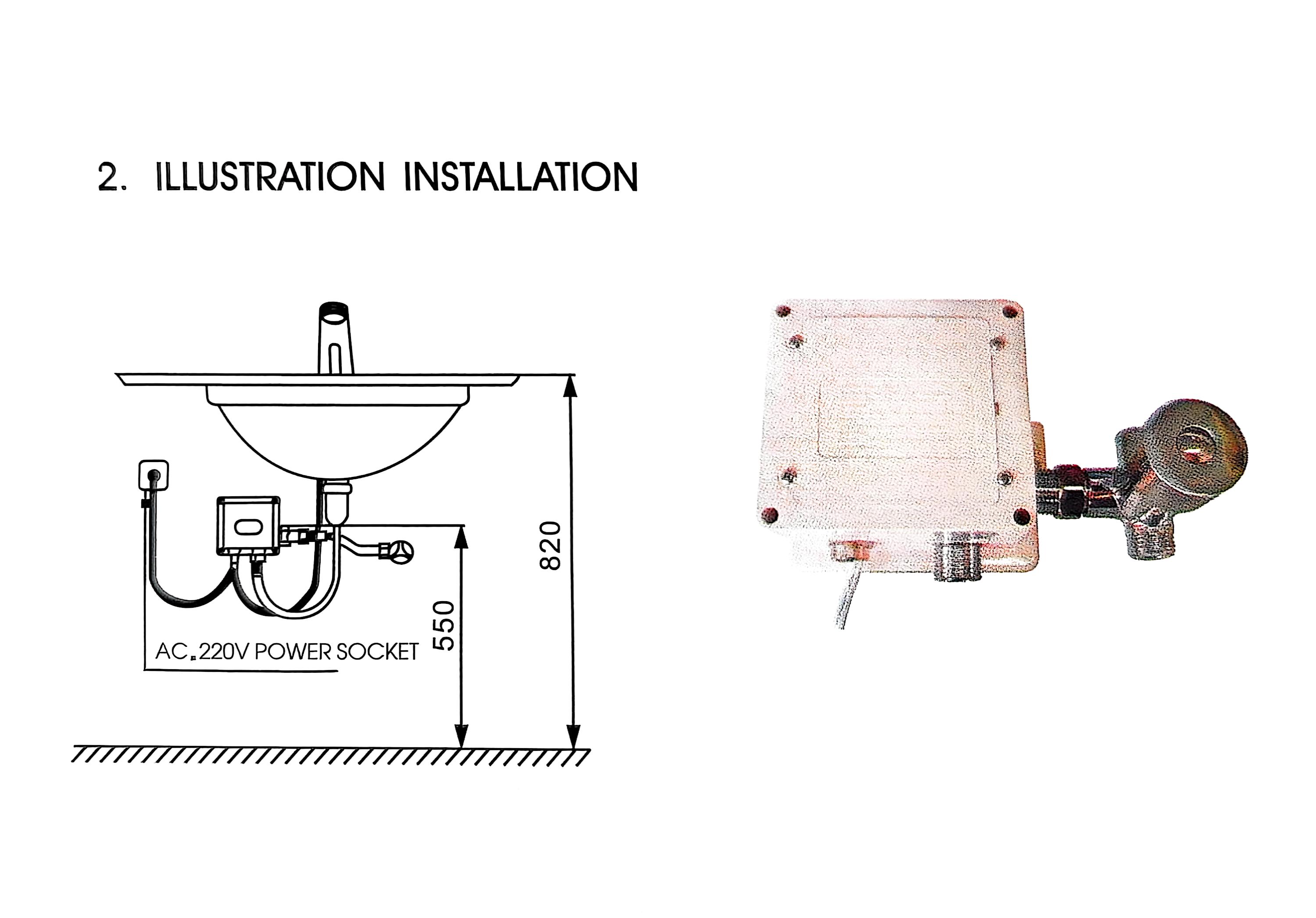 La instalación requiere conectar la válvula a accesorios de plomería G1/2 estándar. que el sistema puede usarse junto con los componentes eléctricos, como lo indica la referencia a un enchufe de alimentación de 220V y dimensiones numéricas (550 y 820), que probablemente corresponden al espacio de instalación o espacios para la alineación y función adecuadas.